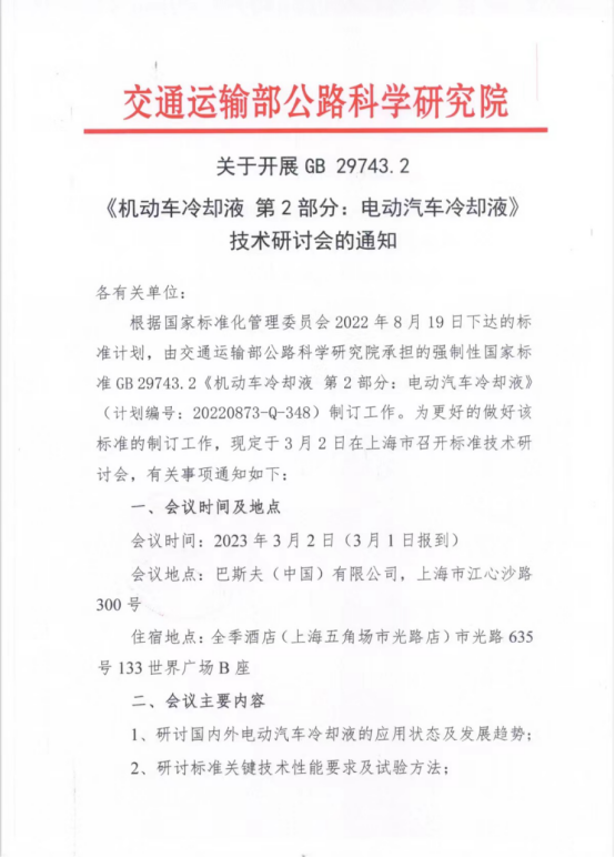 《機動車?yán)鋮s液第2部分:電動汽車?yán)鋮s液》技術(shù)研討會