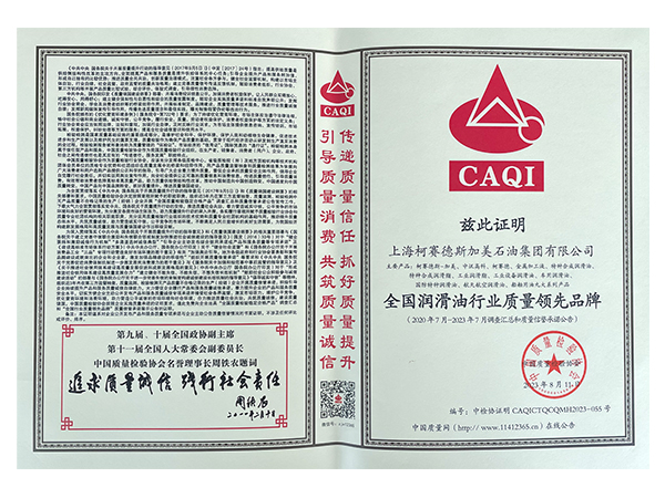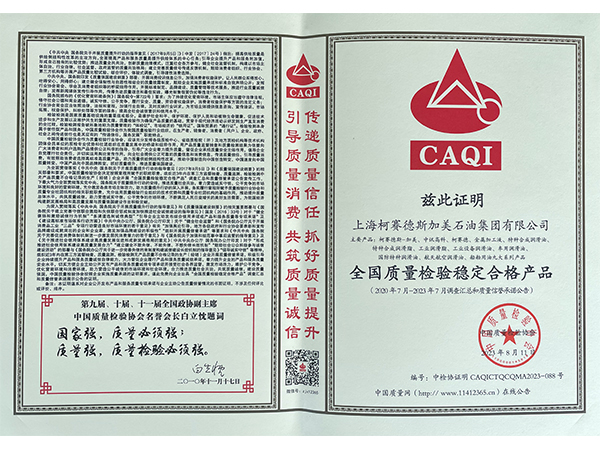 迎接即將到來的又一個全國質(zhì)量月——9月之際,8月11日,中國質(zhì)量協(xié)會向上??沦惖滤辜用朗图瘓F有限公司頒發(fā)三大榮譽,即全國質(zhì)量檢驗穩(wěn)定合格產(chǎn)品、全國質(zhì)量信譽保障產(chǎn)品、全國潤滑油行業(yè)質(zhì)量領(lǐng)先品牌。這是在新的市場形勢下,柯賽德斯加美石油集團深耕能源,堅持質(zhì)量振興企業(yè)、科技助推發(fā)展、誠信塑造品牌戰(zhàn)略的長期努力結(jié)出的碩果。