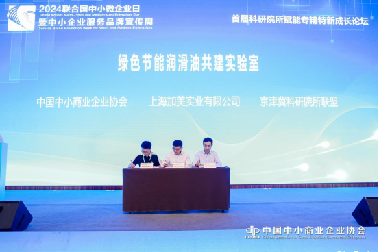 6月27日,“2024聯(lián)合國中小微企業(yè)日暨中小企業(yè)服務(wù)品牌宣傳周——首屆科學(xué)企業(yè)家論壇”在北京舉辦,本次活動由中國中小商業(yè)企業(yè)協(xié)會主辦。28日,由中國中小商業(yè)企業(yè)協(xié)會、上海加美實業(yè)有限公司、京津冀科研院所聯(lián)盟三方共同發(fā)起的“綠色節(jié)能潤滑油共建實驗室”正式設(shè)立。上海加美實業(yè)有限公司董事長、上??沦惖滤辜用朗图瘓F有限公司葉文賢出席了簽字儀式。